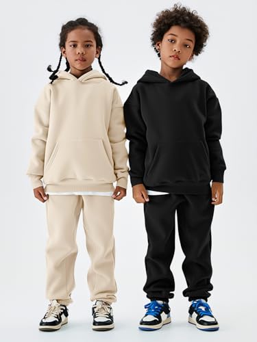 YKR Kids Sweatsuit Girls Boys Fleece 2 Piece Outfits Hooded Sweatshirt and Jogger Sweatpants Athletic Clothing Sets 2