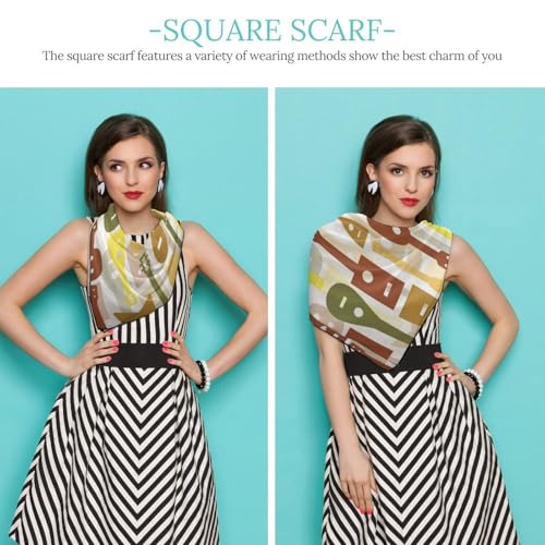 Musical Instrument of Ukulele Pattern Scarf For Women Silk Head Scarf Square Hair Scarves Shawls Hair Wraps Bandana Neckerchief Decor for Adult 27 * 27 Inches 5