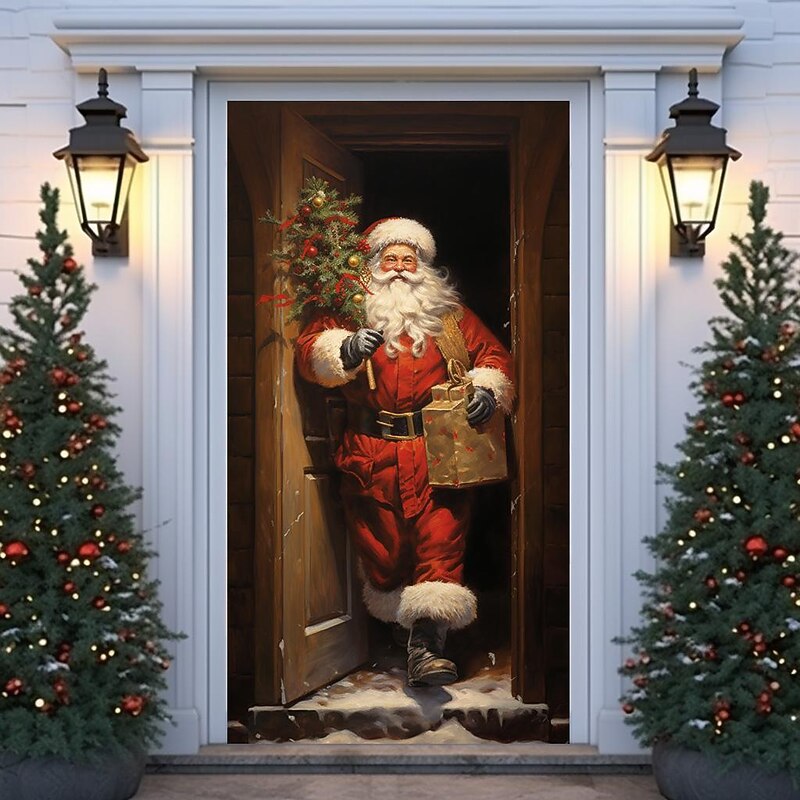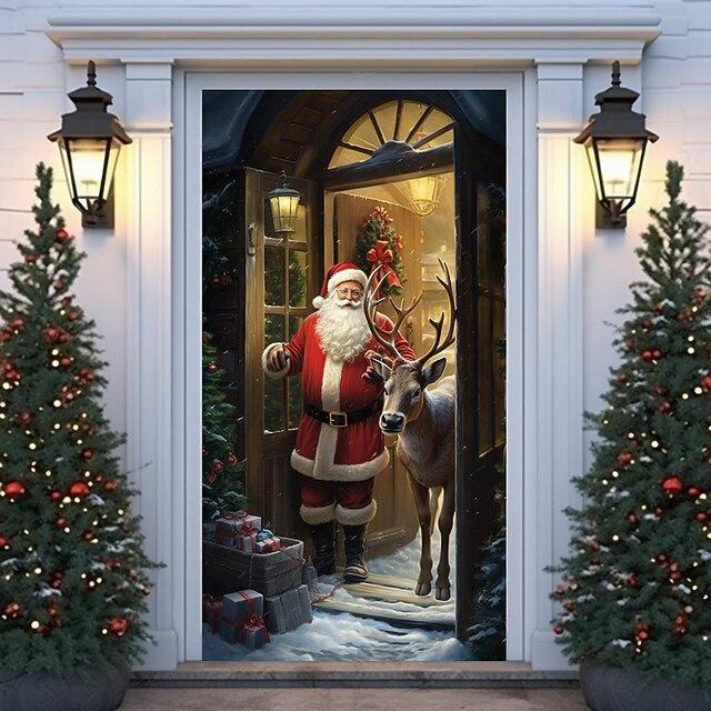 HOT ! Christmas Door Decorations Santa Reindeer Door Covers Door Tapestry Door Curtain Decoration Xmas Backdrop Door Banner for Front Door Holiday Party Decor Supplies