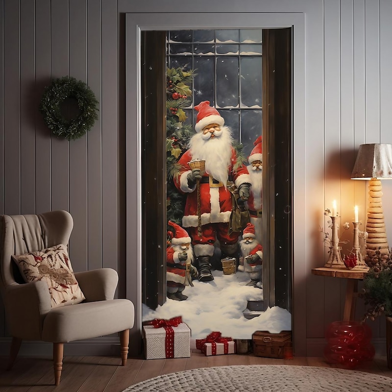 Christmas Door Decorations Santa Reindeer Door Covers Door Tapestry Door Curtain Decoration Xmas Backdrop Door Banner for Front Door Holiday Party Decor Supplies 7