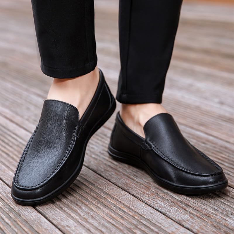 More information about Mens Loafers Shoe Round Toe Leather Solid Color Loafer Shoes Lightweight Flexible Flat Heel Fashion Slip On
