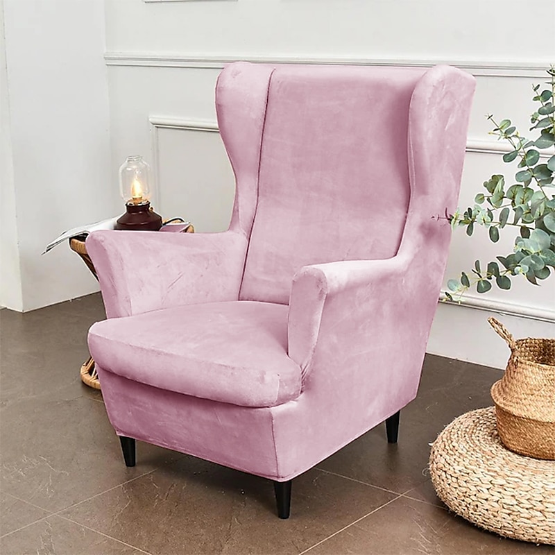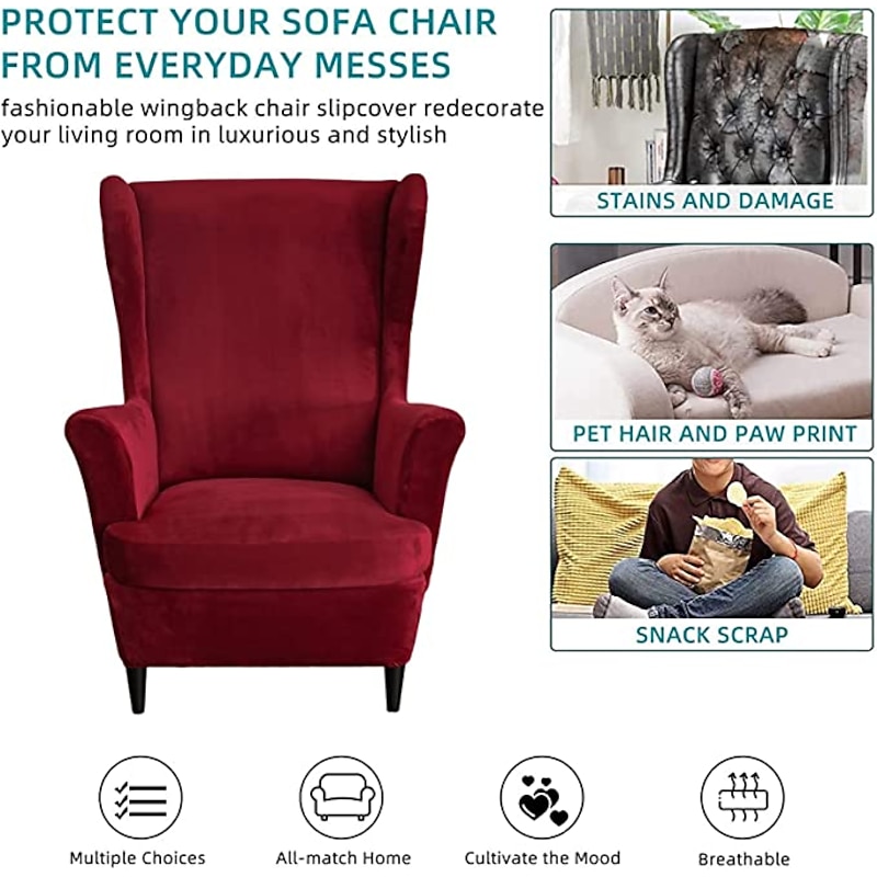 HOT ! Velvet Stretch Wingback Chair Cover Wing Chair Slipcovers Spandex Fabric Wingback Armchair Covers with Elastic Bottom for Living Room Bedroom Decor