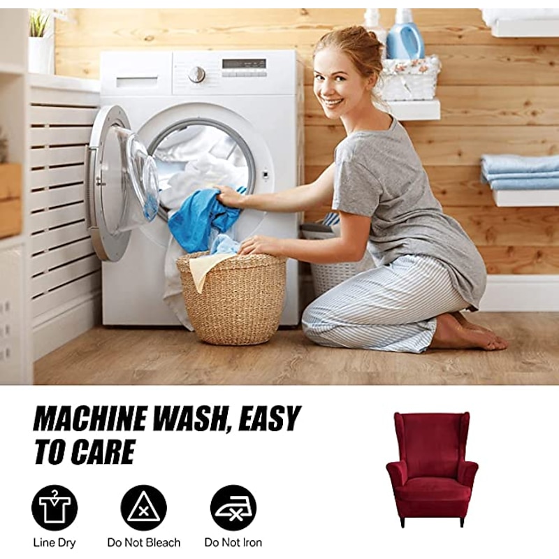 Velvet Stretch Wingback Chair Cover Wing Chair Slipcovers Spandex Fabric Wingback Armchair Covers with Elastic Bottom for Living Room Bedroom Decor 15