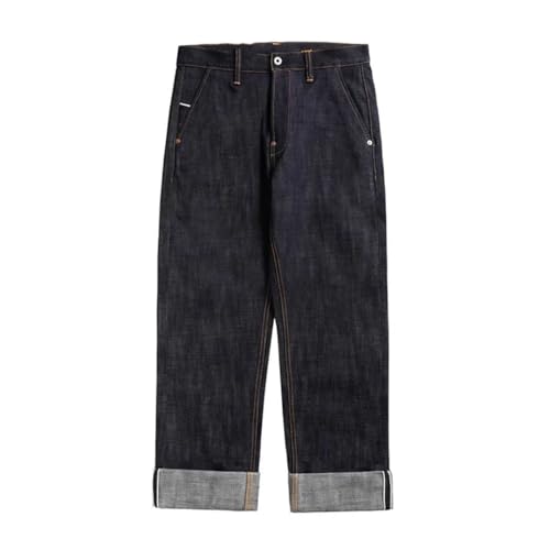 HOT ! Men’S Casual Loose Fit Straight Heavyweight Selvedge Raw Cotton Full Length Jeans Button Fly High Waist Daily Wear Pants