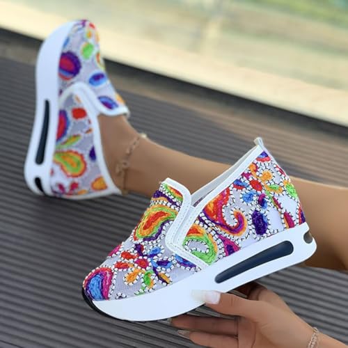 Women's Breathable Mesh Floral Sneakers – Embroidered Slip On Chunky Platform Shoes with Hidden Wedge Heel 6