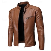 More information about Men's Faux Leather Jacket Biker Jacket Motorcycle Jacket Vacation Daily Windproof Warm Pocket Fall Winter Plain Fashion Classic Stand Collar Regular Black Yellow Jacket