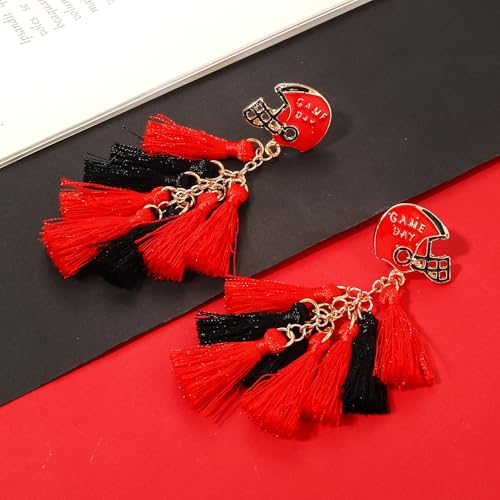 Material: ZincMetal type: ZincEarring design: DangleGem type: Crystal【Game Day Earrings】: It’s GAME DAY y’all!!! These statement game day earrings will be the highlight of your game day outfit!! Feature red balck tassel dangles from a cute football helmet stud, perfect for showing off your team spirit at sporting events, tailgates, or any other game day celebration. Wear these football mom earrings will keep your cheering all day long to light up the ball park!!【Football Mom Earrings】: Embrace the spirit of the game with this stunning football dangle earrings and make a bold fashion statement!! Perfect for any game day outfit, these football tassel earrings offers a sparkling addition to your wardrobe, represent your team and show your spirit in a stylish way! Whether you're cheering from the sidelines or playing on the field, this football mom accessories will elevate your style while displaying your love for football【premium Material&Sizes】: Be the star of the show with these sparkly Red blue yellow purple Spirit day accessories! Made of high quality alloy and acrylic, lead free and nickel free, comfortable to wear, perfect way to accessories your game day outfit when supporting your favorite team or player! Make a statement while supporting your team with this exquisite red black football earrings, give your game day look the perfect finishing touch!! Length: 4in.【Game Day Outfits Accessories】: Calling all football enthusiasts and fashionistas! This Red blue yellow purple Field day earrings perfect for support your favorite football team, go to tailgate party, sports meeting, cheer leading, club, football/ baseball/ volleyball match, game day to show your love for your favorite sport. Treat you into the sport match with these football team earrings, embrace the spirit of the game make a bold fashion statement and add an extra kick to your game day look【Fabulous After-Sale Service】: Welcome style and spirit to the stands in this game day accessories, exudes elegance and showcases your passion for the charming game. Wonderful gifts for baseball, soccer, football, volleyball, basketball fans, or go to your tailgate party and support your favorite team wearing our beautiful and fashionable jewelry gift! If you have any questions for purchase and after-sale, please contact us immediately, we will make right everything for you Perfect for everyday use. High quality materials and excellent craftsmanship ensure long-lasting durability.