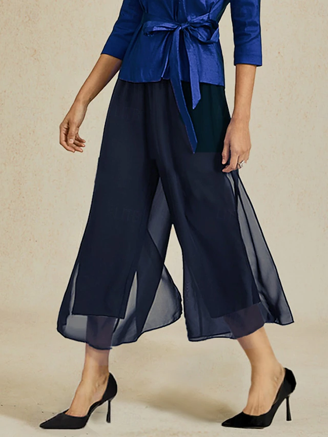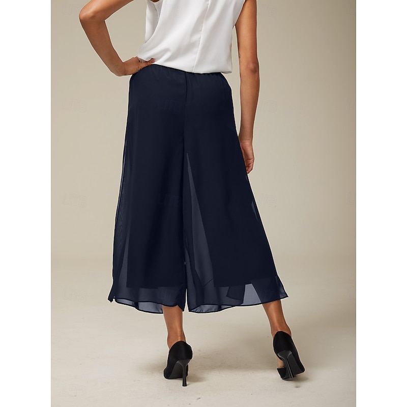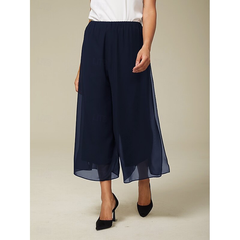 More information about Women's Culottes Wide Leg Vacation Classic Calf-Length Mid Waist Elastic Waist Stylish Fashion Stretchy Formal Office Dailywear Navy Blue Summer Spring Fall