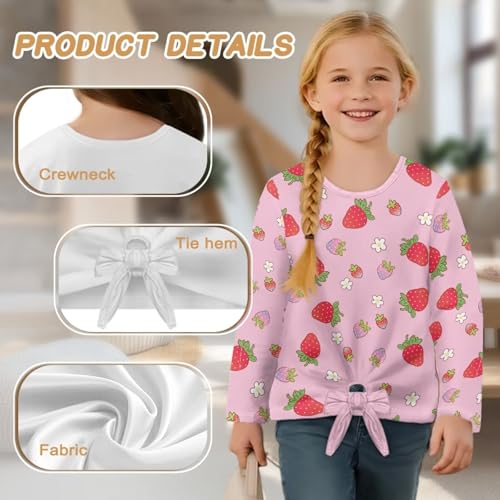 Long Sleeve Shirts for Girls Comfy Athletic Tees Top Casual Tie Knot Front Blouse Kids Fall Sweatshirts 6