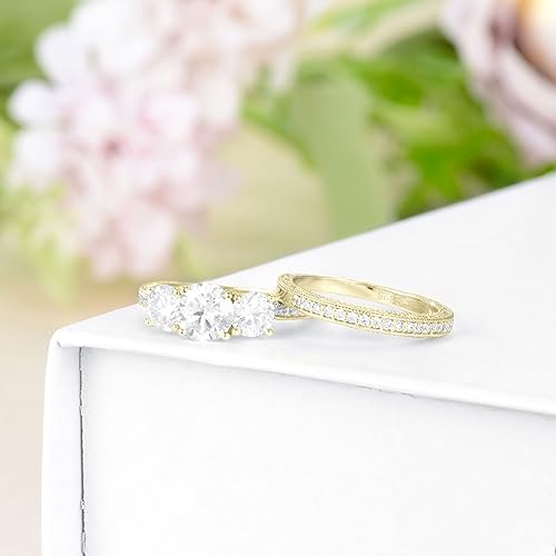 Moissanite Engagement Rings Set 925 Sterling Silver White Gold/Yellow Gold/Rose Gold Wedding Rings Bridal Rings Set for Women, D Color VVS1 Round Cut Bridal Sets for Women 3