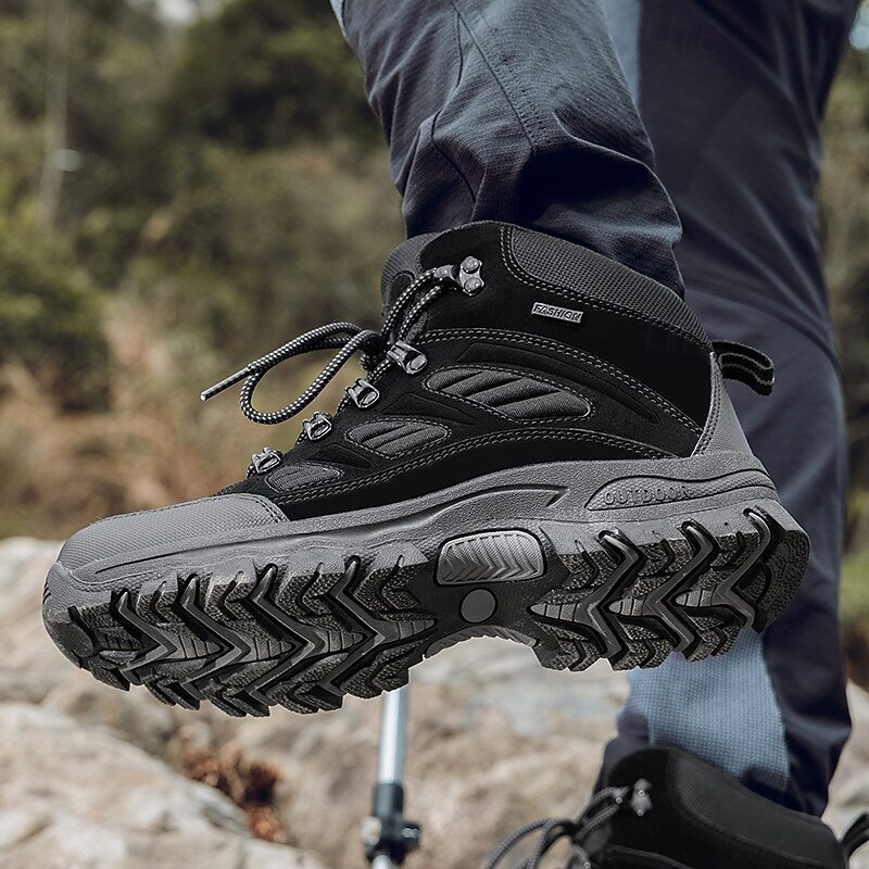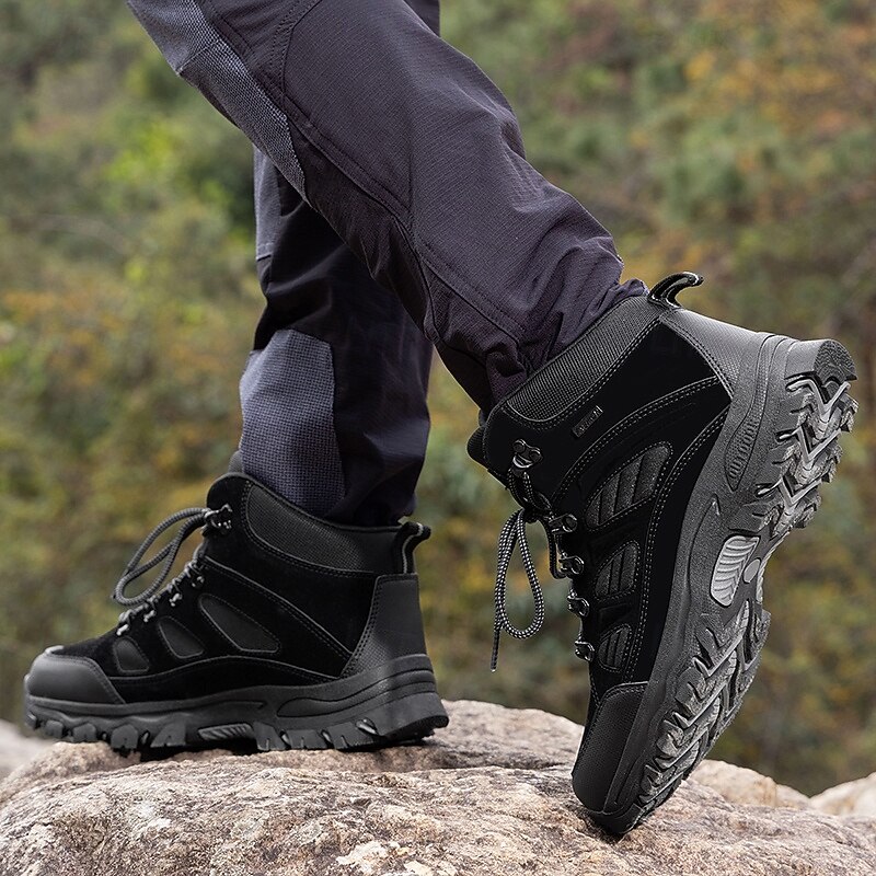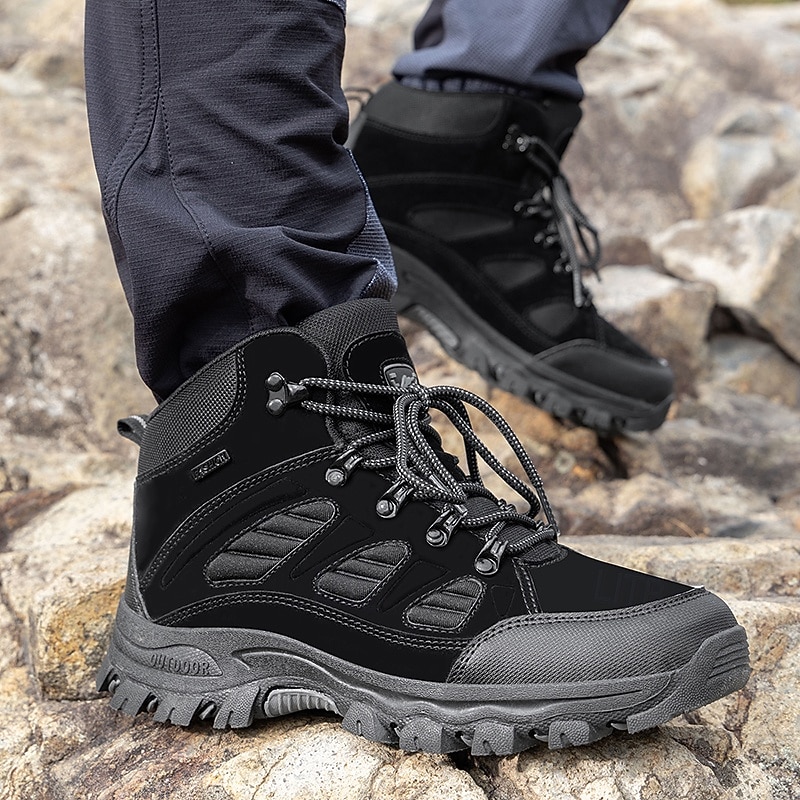 HOT ! Men's Dark Brown Winter Hiking Boots with Lace-Up Design, Warm Lined Trekking Shoes for Outdoor Sports and Cold Weather Adventures
