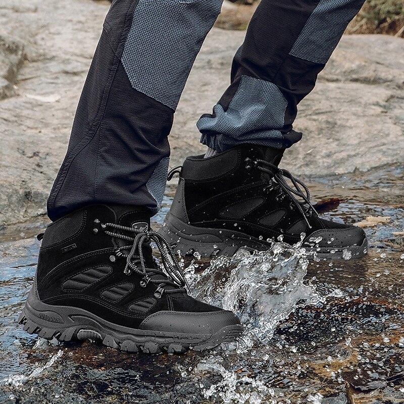 Men's Dark Brown Winter Hiking Boots with Lace-Up Design, Warm Lined Trekking Shoes for Outdoor Sports and Cold Weather Adventures 25