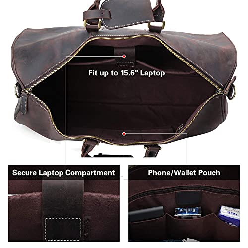 Polare 23'' Classic Full Grain Leather Travel Duffel Weekender Bag Overnight Duffle Bag For Men 7