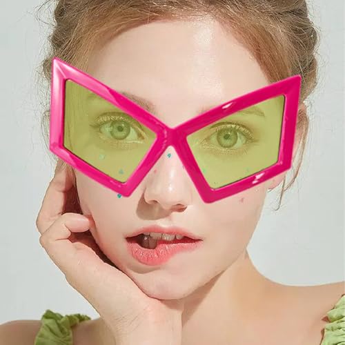 • Trendy Oversized Cat-Eye Design: Make a bold statement with large geometric cat-eye funky sunglasses in eye-catching hot pink. Retro meets fashion-forward for the ultimate party accessory