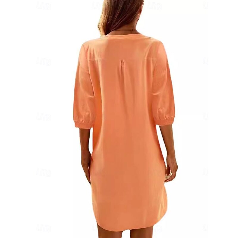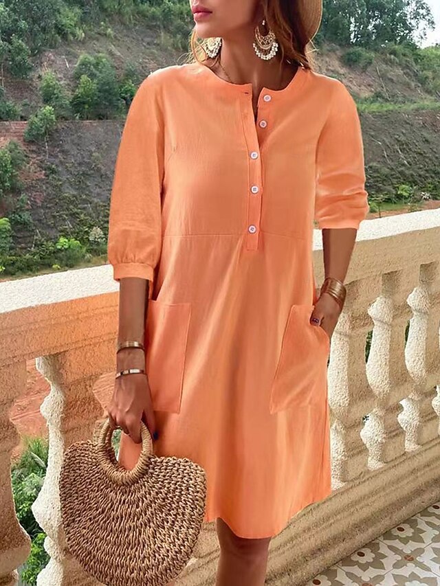 More information about Women's Long Dress Maxi Dress Linen-Inspired Dresses Casual Dress Elegant Stylish Basic Vacation Daily Date Regular Fit Plain 3/4 Length Sleeve Crew Neck Blue Orange Summer Spring Fall