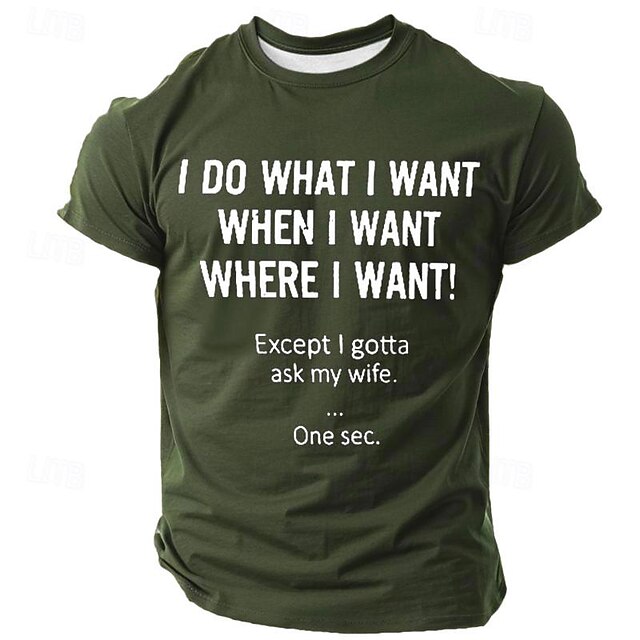 Highlights [Fabric] : Crafted from high-quality polyester, this men's T-shirt offers a soft and breathable texture for optimal comfort. The fabric features an excellent stretch that adapts well to your movements, making it ideal for everyday wear. [Fit Type] : The tailored fit design ensures a flattering silhouette for all body types, providing both style and comfort. The men's T-shirt is suitable for those looking for a relaxed yet polished look. [Design Highlights] : This T-shirt showcases a humorous 3D printed slogan on the front, adding a touch of fun to your wardrobe. The olive green base color offers a versatile and stylish appearance that pairs well with various outfits. The classic crew neck and short sleeve design underline its casual charm, making it a standout piece for any laid-back occasion. [Occasions] : Perfect for holiday events, parties, or casual outings during the spring and summer seasons. Whether you're enjoying a relaxed weekend or attending a fun gathering, this T-shirt is the perfect choice to make a statement with its vintage and cool style. [Size Range] : Available in a wide range of sizes from S to XXXL, catering to different body shapes and preferences, ensuring a comfortable fit for all.