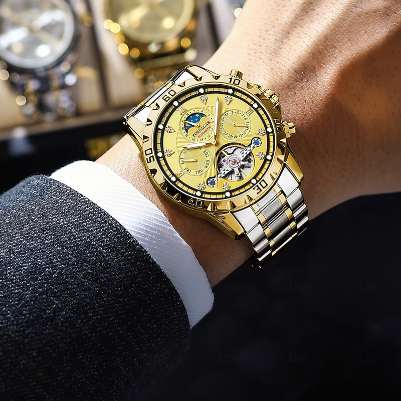 Luxury Hollow Tourbillon Men Watches Waterproof Luminous Automatic Mechanical Watch Date Week Stainless Steel Men Watch 4