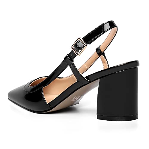 AMBELIGHT Womens Wedding Solid Slingback Square Toe Patent Dress Buckle Chunky Mid Heel Pumps Shoes 2.5 Inch 3