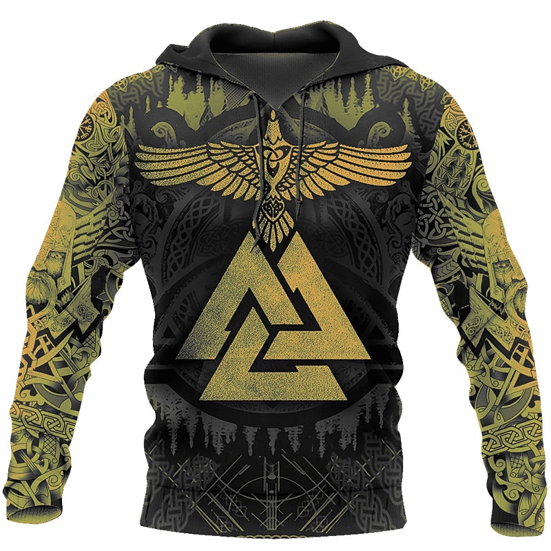 Men's Viking Warrior Graphic Prints Viking Hoodie Hoodies Sweatshirt Daily Classic Long Sleeve Hooded Holiday Going out Streetwear Black Yellow Print Spring &  Fall Designer 11
