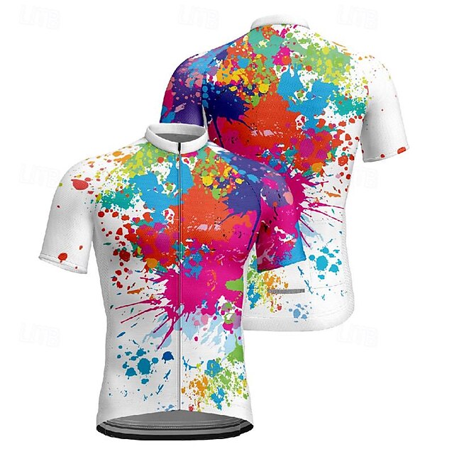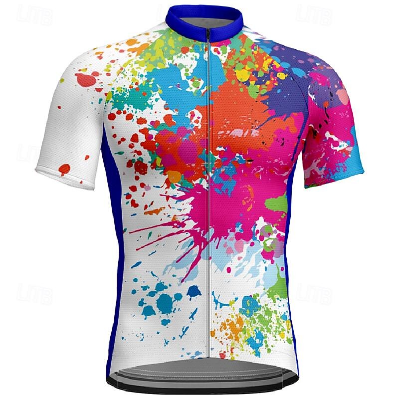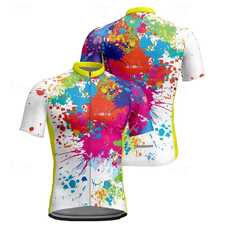 More information about Men's Cycling Jersey Graffiti Short Sleeve Bike Tee Tshirt Jersey with 3 Rear Pockets Mountain Bike MTB Quick Dry Anatomic Design Wicking Breathable Sports White Yellow Blue Clothing Apparel
