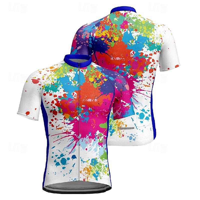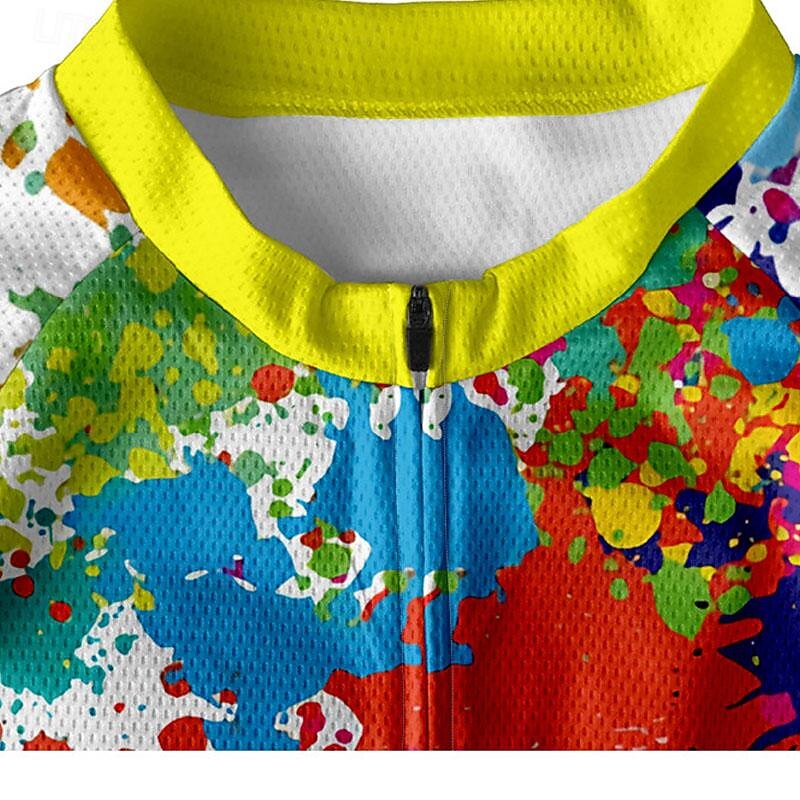Men's Cycling Jersey Graffiti Short Sleeve Bike Tee Tshirt Jersey with 3 Rear Pockets Mountain Bike MTB Quick Dry Anatomic Design Wicking Breathable Sports White Yellow Blue Clothing Apparel 25