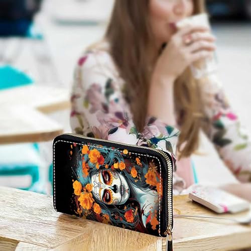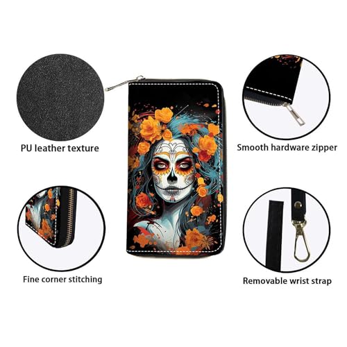 More information about Sugar Skull Girl Flower Wallet for Women with Credit Card Holder Coin Money Clip PU Leather Zip Around Clutch Wallet