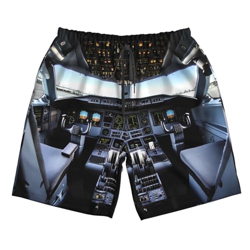 HOT ! Airplane Cockpit Men's Swim Trunks Quick Dry Board Shorts with Pockets Casual Drawstring Beach Shorts