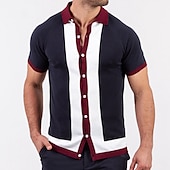 More information about Men's Knit Polo Sweater Polo Shirt Outdoor Street Turndown Button Short Sleeve Fashion Streetwear Color Block Button Front Summer Spring Fall Regular Fit Navy Blue Knit Polo Sweater