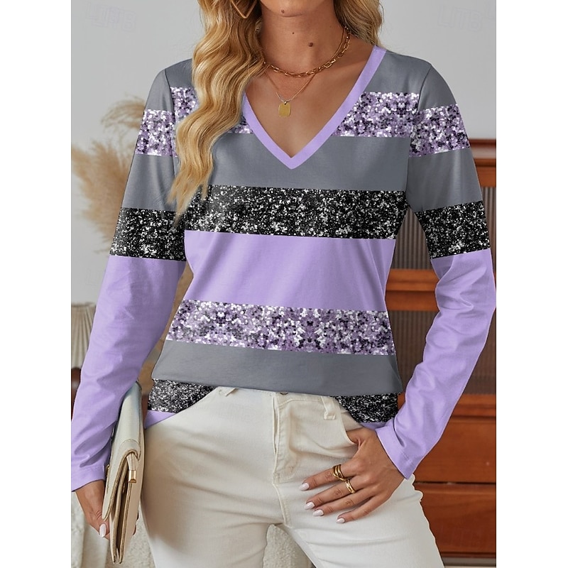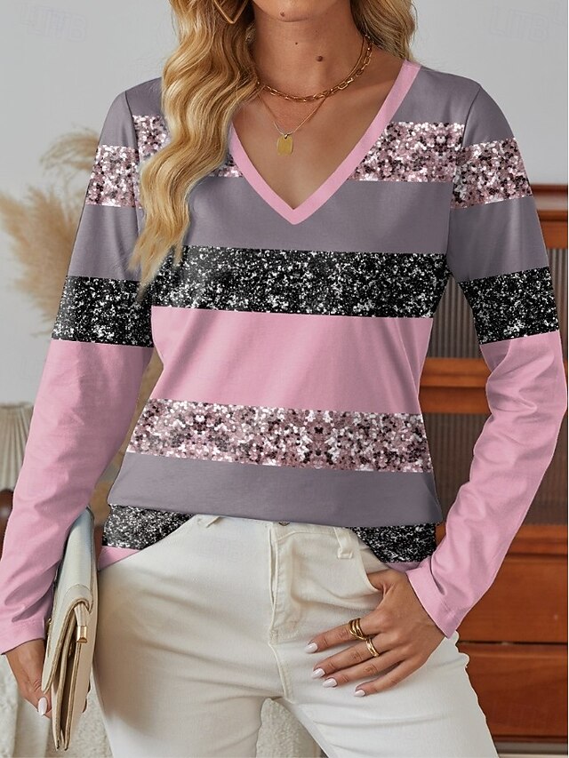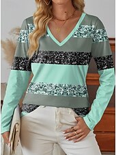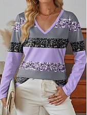 More information about Women's T Shirt Ombre Graphic Geometric Vintage Stylish Classic Long Sleeve V Neck Regular Tops Daily Print Pink Purple Green Spring Fall Winter