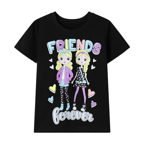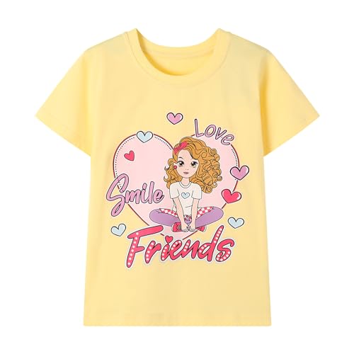 HILEELANG Girl T-Shirts Short Sleeve Graphic Tees Cotton Casual Summer Tops Shirts Packs 1