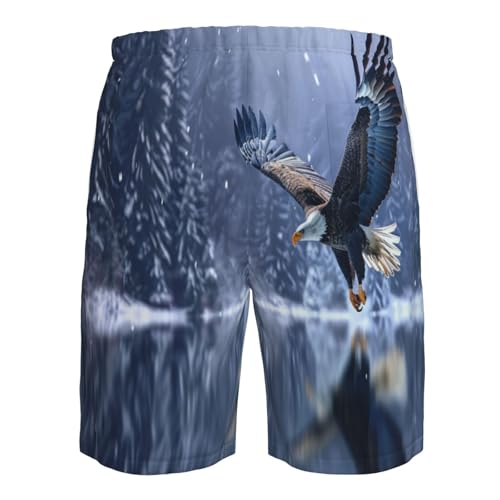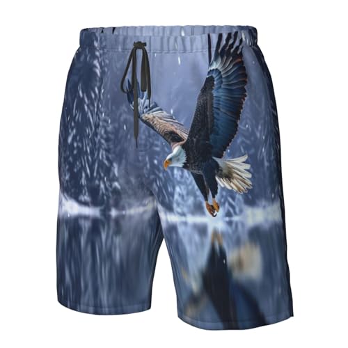 The Eagle Flying On The Lake Men's Beach Pants-Quick-Dry & Comfortable Mens Beach Shorts for Men, Perfect for Surfing and Everyday Wear White 6