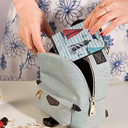 Boats Ships Vessels Nautical Acnhors Light House Credit Card Coin wallet, RFID Blocking Compact Women Leather Card Holder, Key Change Organizer, Zipper Purse Clutch Pouch Pocket 6