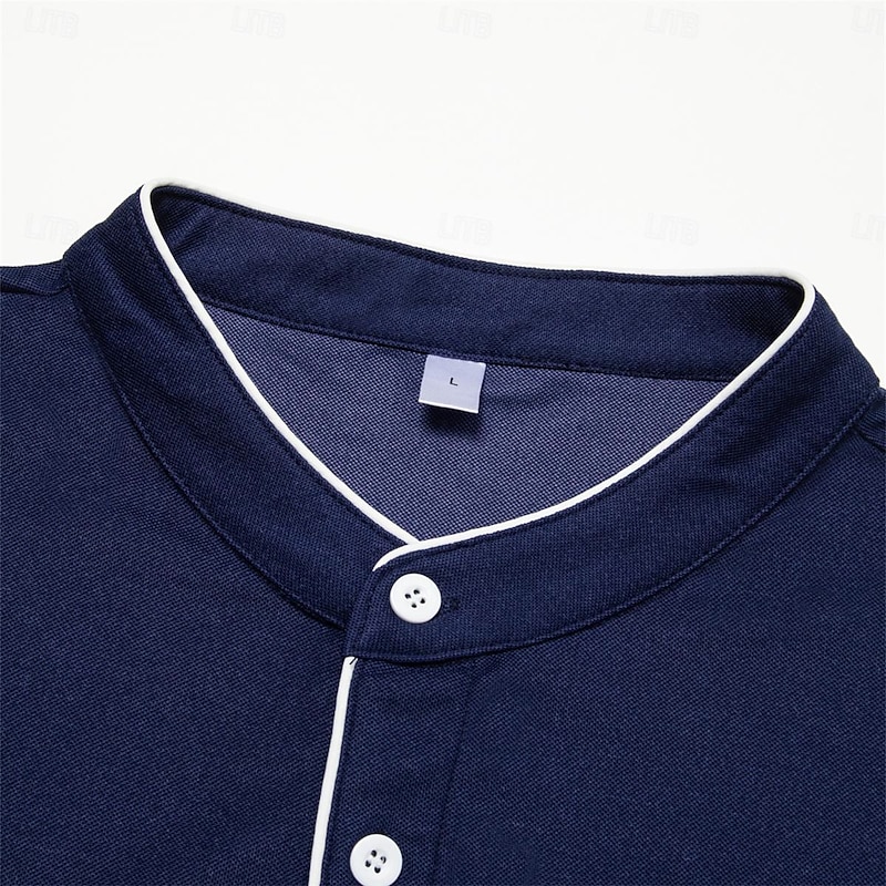 Highlights 1. Perfect for summer: This t-shirt is designed to keep you cool and comfortable during the hot summer season. 2. Short sleeve style: The t-shirt features short sleeves, making it ideal for warm weather and allowing for easy movement. 3. Suitable for men: This t-shirt is specifically designed for men, ensuring a flattering fit and style. 4. Stand collar design: The t-shirt is crafted with a stand collar, adding a modern and sophisticated touch to your outfit.
