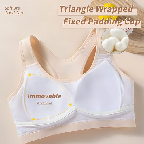 Felskin Training Bras for Big Girls 10-16 Years Racerback Seamless Teens Padding Bra 3Packs 4