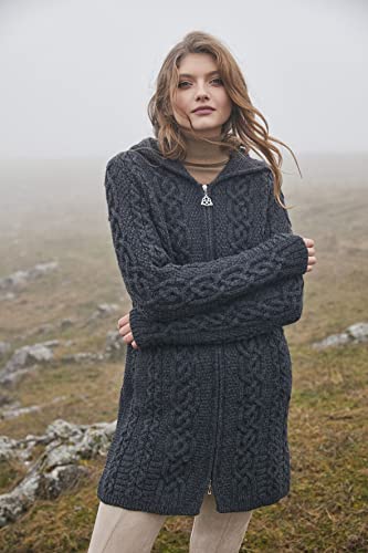 SAOL 100% Merino Wool Aran Irish Cardigan for Women with Pockets, Hood and Celtic Zipper 6