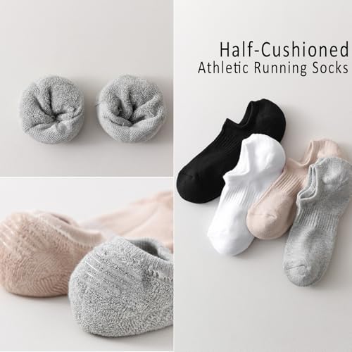 Thick No Show Socks for Women Athletic Low Cut No Show Socks Cushioned Running Socks Non Slip Invisible Liner 4/8 Pack 5