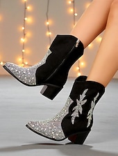 More information about Women's Rhinestone Western Ankle Boots - Sparkly Cowboy Style Mid Heel Short Boots for Nightlife Party and Club Outfits
