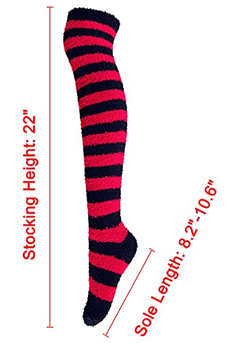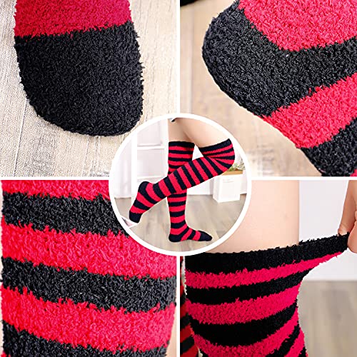 Bellady Coral Knee High Socks for Women Striped Fuzzy Socks Warm Leg Warmers 4