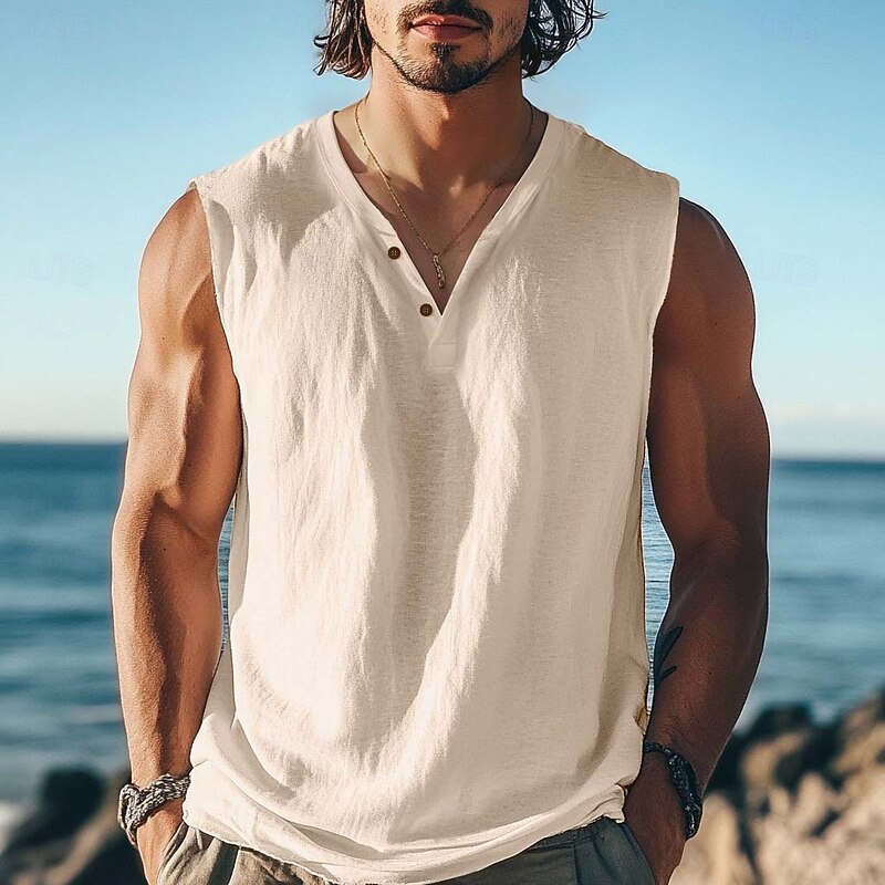Why Choose Men's T Shirt Sleeveless Short Sleeve V Neck Summer Plain Textured Fashion vintage Casual Plain Street Casual Sports Black White Blue Top Tee for Men?