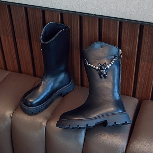 HOT ! Fashion Autumn and Winter Children Mid Calf Boots Thick Bottom Non Slip Round Toe Solid Color Girls Wide Snow Boots (Black, 10.5-11 Years Big Kids)