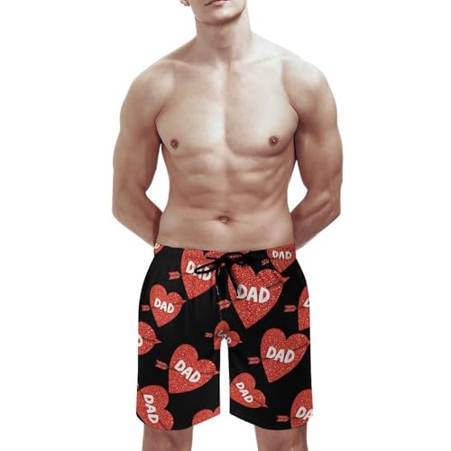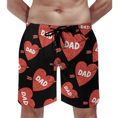 HOT ! Dad Tattoo Heart with Arrow Mens Swim Trunks Quick Dry Board Shorts Beach Swimwear Bathing Suits