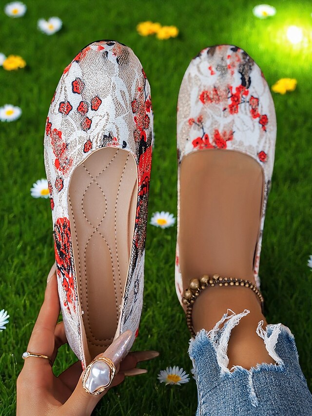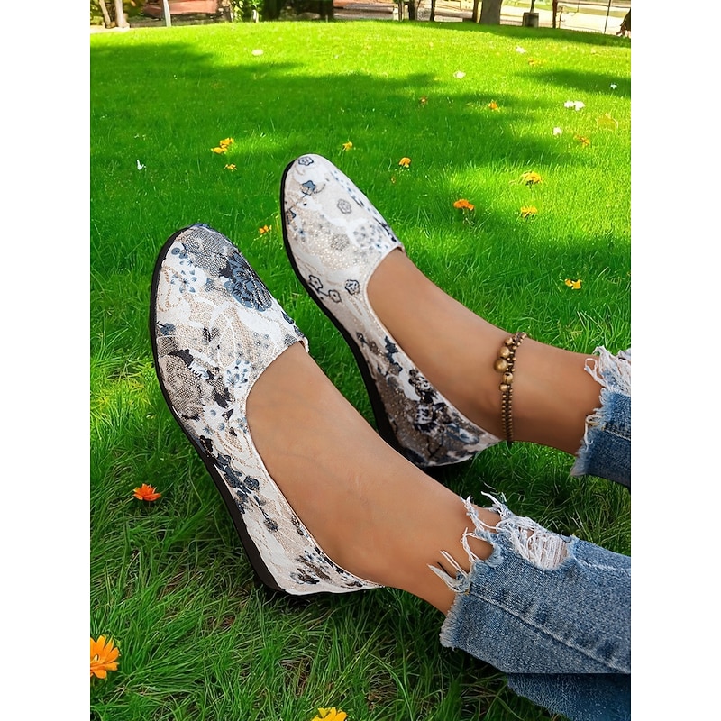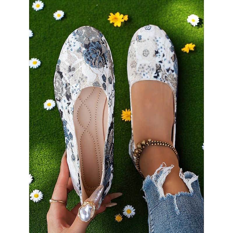 HOT ! Women's Floral Ballet Flats – Lightweight Casual Round-Toe Shoes for Ladies, Ideal for Strolling in the Park, Spring Picnics and Daily Comfort