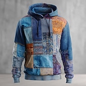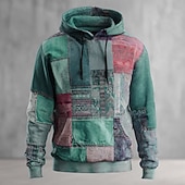 More information about Men's Geometric Plaid Hoodie Sweatshirt Fashion Daily Crew Neck Home Party Streetwear Light Green Blue Drawstring Fall Winter Designer