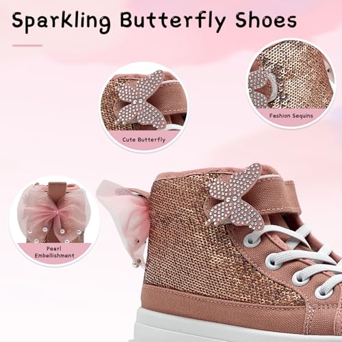 Toddler Sneakers for Girls Boys Fashion Canvas High Tops Butterfly Sequins Shoes Kids Casual Walking Shoes 3
