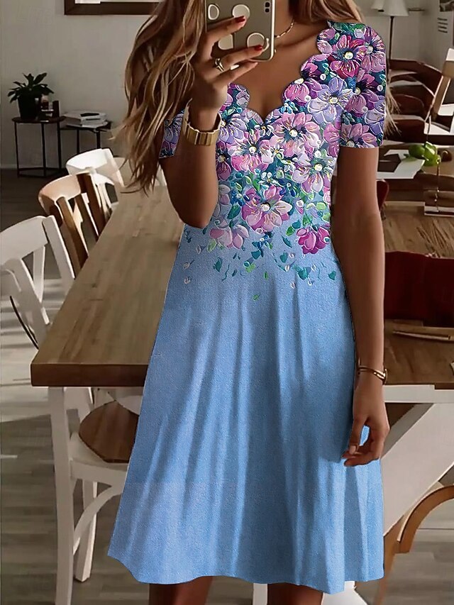 More information about Women's Mini Dress T Shirt Dress Tee Dress Sundress Summer Dress Casual Daily Regular Fit Floral Graphic Short Sleeve V Neck White Light Green Blue Green Summer Spring