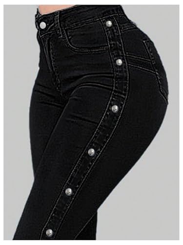 More information about WDIRARA Women's Button Side Flare Jeans High Waisted Raw Hem Bell Bottom Denim Pants