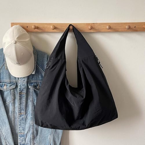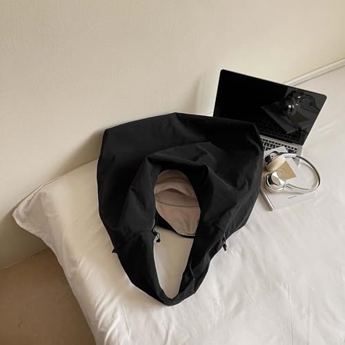 More information about Slouchy Tote Bag for Women Crescent Shoulder Bag Nylon Solid Pleated Handbag Casual Hobo Bag Travel Vacation