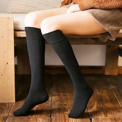 Women's Cotton Knee High Socks 2 Pairs Solid Colors Socks Cotton Warm Over the Knee Socks Casual Long Leg Dress Warmer Stockings 7