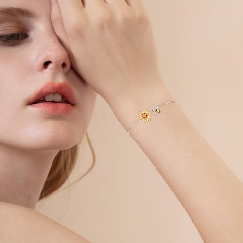 sizzling ! Dreamboat Gold Sunflower Bracelets for Women Bee Bracelet Cute Animal Bracelets Gold Flower Bracelet Adjustable Sterling Silver Bracelets Bee Jewelry Honey Bee Gifts