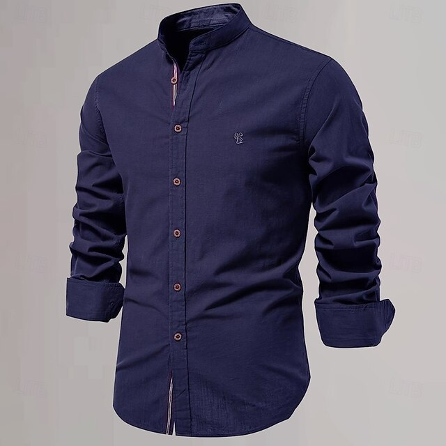 sizzling ! Men's Chinese Collar Shirt Mandarin Collar Shirt Cotton Linen Shirt Plain Vacation Casual Daily Black White Light Green Dark Blue Long Sleeve Grandad Collar Clothing Apparel